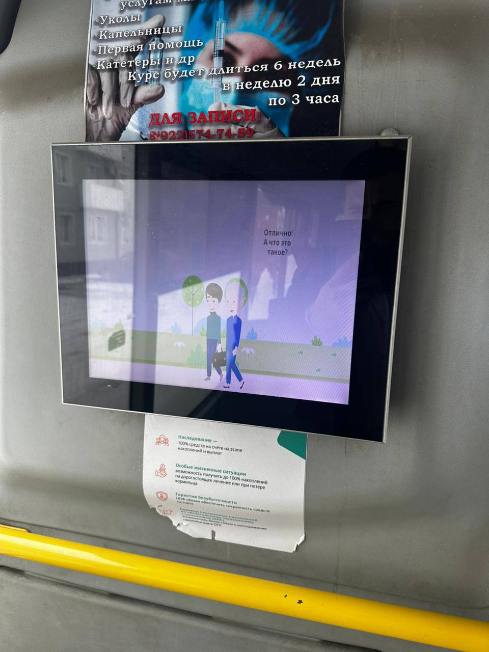 Чтобы охватить большую аудиторию, Министерство финансов Чеченской Республики разместило видеоролики по повышению финансовой грамотности на мониторах в салонах городского общественного транспорта.